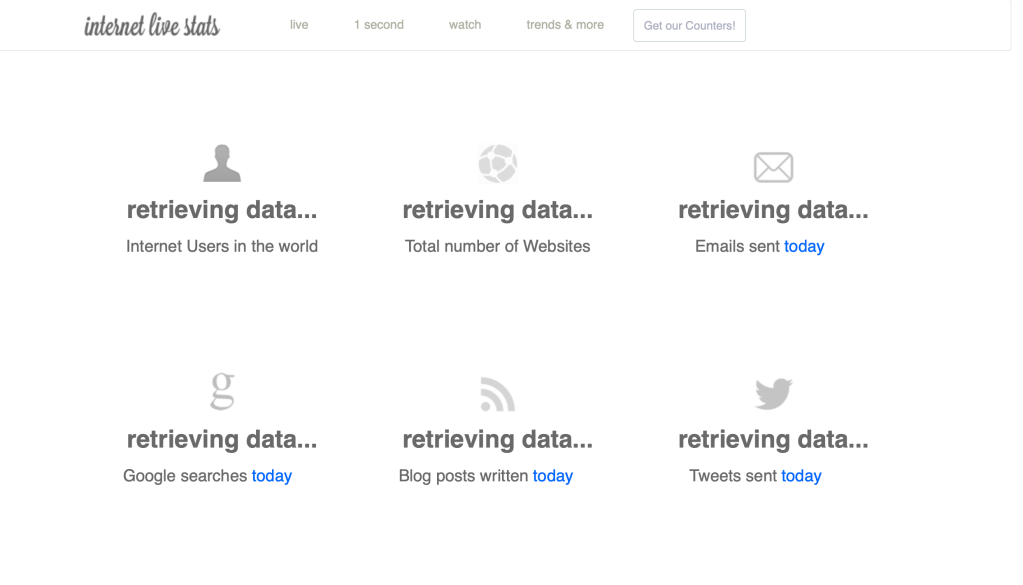 - En la página www.internetlivestats.com podemos hacer un seguimiento de la situación en tiempo real de las búsquedas y actividades en todo el mundo: consultas, publicaciones y visualizaciones.